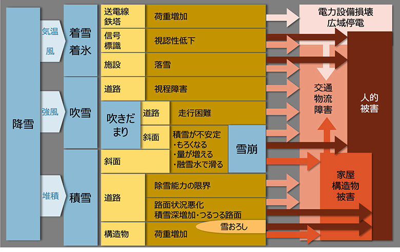 防災科研コラム 防災科研の様々な取り組みの中でも、地域や人々の生活に密着した身近なものを中心に取り上げて紹介しています。また、防災科研のスタッフが他のメディアに寄稿したコラムについても随時紹介します。 特集 大雪となるメカニズム【太平洋側編】 太平洋側では南岸低気圧にともなって広い範囲に様々な雪が降ります。降雪粒子の特徴や起きる災害は一様ではありません。 大雪となるメカニズム【日本海側編】 日本海側では発達した雪雲が同じ場所に来続けて大雪の要因となります。 道路雪氷【1.道路で起こる雪氷現象の総称】 道路雪氷を適切に処理をしないと、交通障害を引き起こし、交通・物流に支えられている私達の生活に大きな影響を及ぼします。 道路雪氷【2.道路雪氷災害から身を守る】 冬期道路の安全確保のため、道路交通の確保の考え方は「できるだけ通行止めにしないこと」から「人命を優先に車両滞留を回避すること」へと変わってきています。 雪おろシグナルの使い方 「雪おろシグナル」は、雪おろしのタイミングを判断するのに役立ちます。 令和元年度成果発表会 特別対談 2020年2月13日に開催された、令和元年度成果発表会の第3部では「避難〜災害を乗り越えるための行動をどう促していくか」をメインテーマに、特別ゲストコメンテーターとしてお迎えした池上彰氏と林春男理事長の対談が行われました。