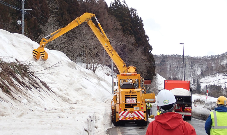 ・安全な道路の確保(例えば、図3のような斜面積雪の除去作業)