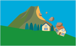 山や崖などの斜面を構成する岩石や土などが重力によって下方に移動を起こすことによって生じる災害です。