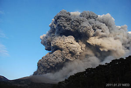 いったん火山が噴火すると、流れ出る溶岩流や高温のガス・灰が高速で流れ下る火砕流、大きな岩が飛び散る噴出岩塊の被害はもちろん、広域に降る火山灰にも注意が必要です。火山灰とは火山岩が粉々になった細かい粒子のことで、風向きによって広域での被害が予想されます。
