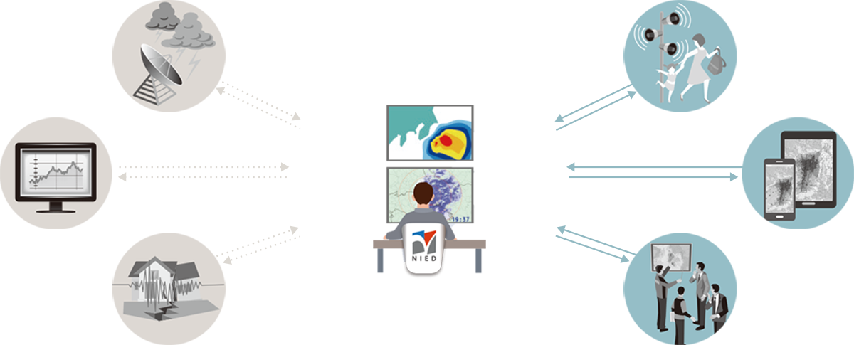 防災科研は、ユーザーの意思決定に役立つ「情報プロダクツ」の研究開発、および社会への実装に向けた取り組みを行っています。