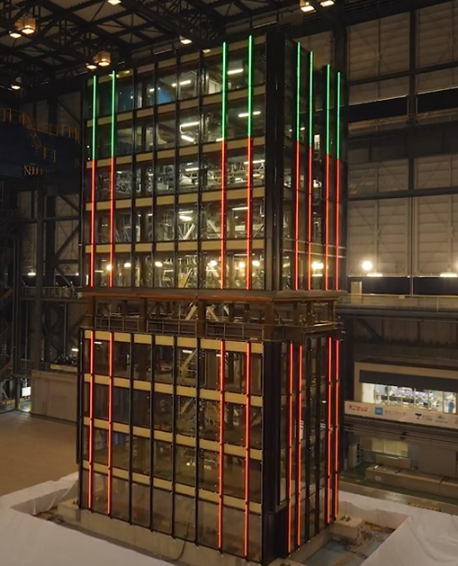 兵庫県三木市に所在する、世界最大にして最高性能の振動台(大きさ20m×15m、最大搭載荷重1,200t)により、実物大の構造物の加振実験ができる施設