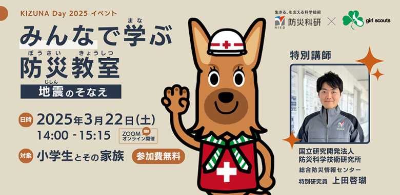 国立研究開発法人防災科学技術研究所とガールスカウト日本連盟の共催による防災教室を開催します。
