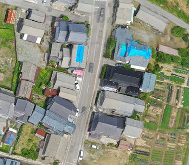 発災直後の住家被害認定調査では、ドローンによる空撮やAIによるブルーシートの判定 などを実施、被災地に対し早期に被害状況を還元することで、罹災証明書の素早い発⾏につなげるなど、被災者⽣活再建⽀援に対して⼀定の貢献をすることができました。