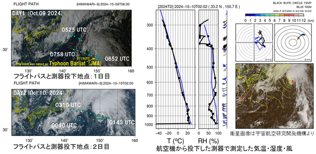2024年10月には台風第19号を対象にこの気象測器の最新型を用いた航空機観測が実施され、測定値が世界気象機関の全球通信システムを介して世界中に配信され、世界各国の気象機関の数値予報システムに組み込まれました。台風の中心付近の測定値を得ることで台風の進路や強度の予測精度の一層の向上が期待されます。