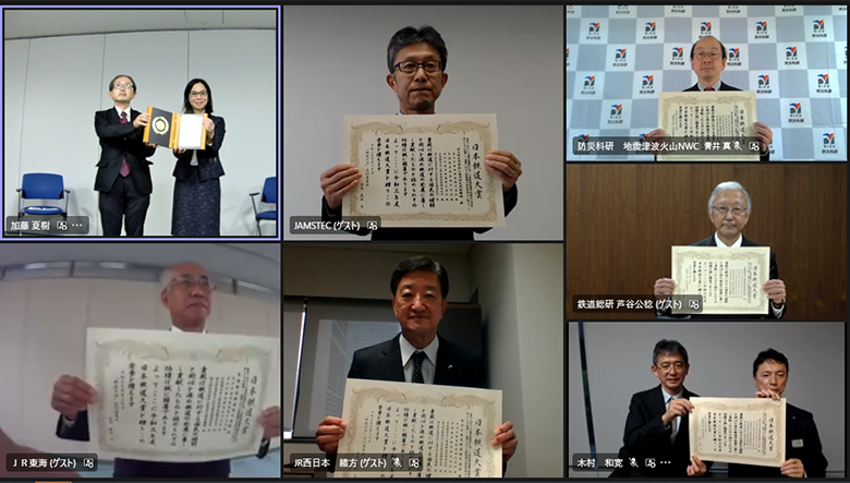防災科研は、東日本旅客鉄道株式会社、東海旅客鉄道株式会社、西日本旅客鉄道株式会社、公益財団法人鉄道総合技術研究所、国立研究開発法人海洋研究開発機構とともに第20回日本鉄道賞 日本鉄道大賞を受賞しました。