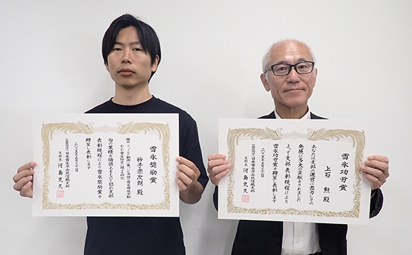 雪氷防災研究センターの砂子宗次朗特別研究員が2025年度日本雪氷学会北信越支部雪氷奨励賞、上石勲特別研究員が雪氷功労賞を受賞しましたのでお知らせいたします。