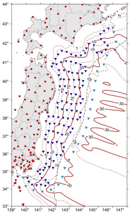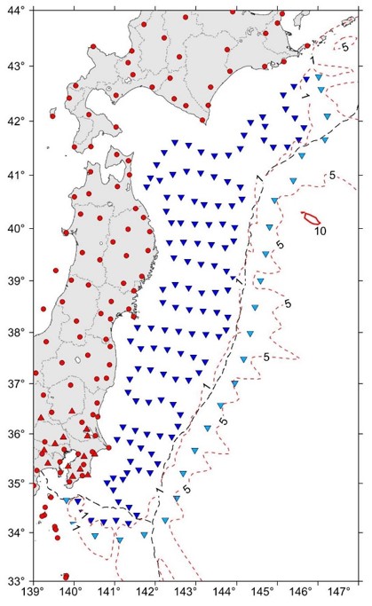 図1:日本海溝海底地震津波観測網(S-net)の観測点分布図