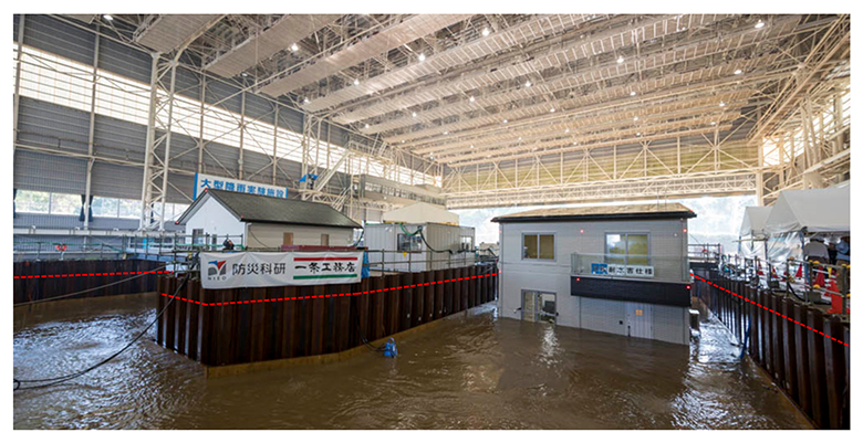 国立研究開発法人防災科学技術研究所と株式会社一条工務店は、大型降雨実験施設を用いて水位3mという浸水状態を再現し、浸水対策を講じた家と講じていない家の2棟を比較する、水害に強い「耐水害住宅」の検証実験を公開で実施します。