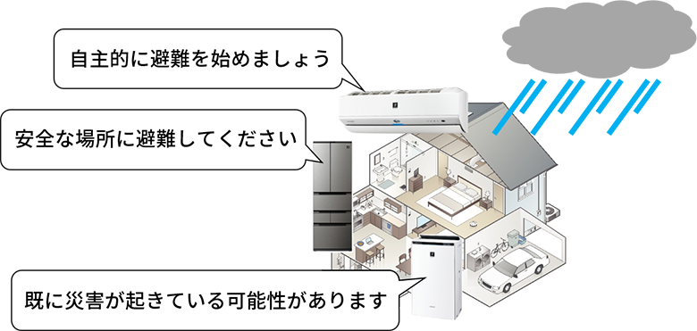 家電の機器本体に内蔵された定型の音声メッセージに加え、クラウド上にある音声データを状況に合わせて発話させることが出来る機能です。クラウド上で音声データを簡単に変更できるので、利用状況や環境を認識して、お客様に合わせたお知らせを発話させることが可能です。今回の実験では、本音声発話機能を活用することで、指定した家電に防災情報を試験発信します。