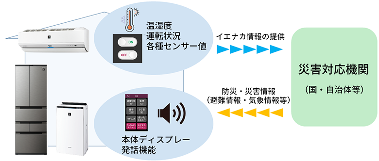 今回の実証実験では、音声発話機能を搭載したシャープ製の冷蔵庫・エアコン・空気清浄機の対象機種を利用されている市民の中から、参加者を募集。防災情報を模した音声情報を各家電から1日数回発信し、期間終了後に音声情報の内容をどの程度認知したか確認することで、家電の発話による防災情報の伝達効果を検証します。