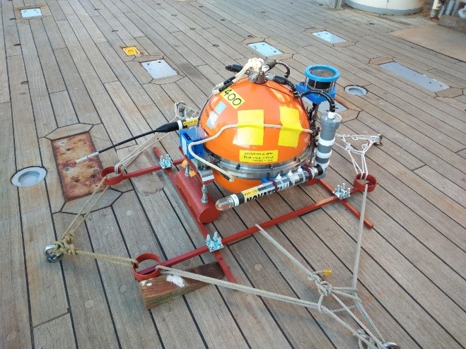 実際の海底環境での水圧計の性能を評価するためにフィールド実証試験を行いました。千葉県房総半島沖、水深3,436メートルの海底に水圧計を設置し、203日間分の有効な測定データを取得しました。発生頻度が低い津波の観測データを得ることは通常難しいことですが、本試験期間中の2022年1月15日に発生したトンガのフンガ・ハアパイ火山の噴火に伴う7センチメートル(cm)の海面変動を観測しました。また、データの解析から、1センチメートル (cm)を下回る海面の高さ変化に相当する圧力変化を観測できていることから、実際の津波を十分に観測できる性能を有していることが確認されました。この水圧計は、「国産」深海用高精度測器であり、海外の最先端測器と同程度の感度を有しています。