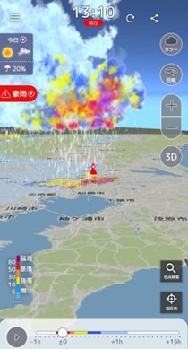 アプリ「3D 雨雲ウォッチ」で確認できる雨雲イメージ