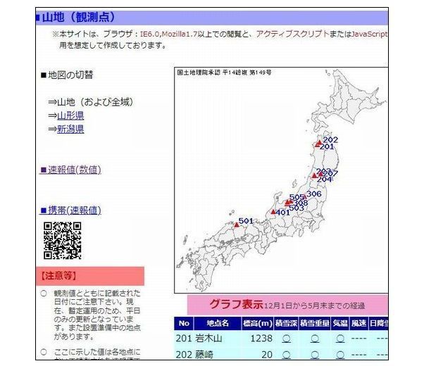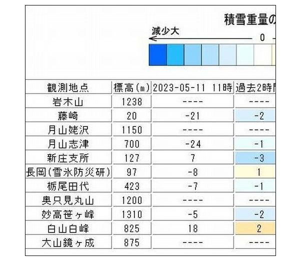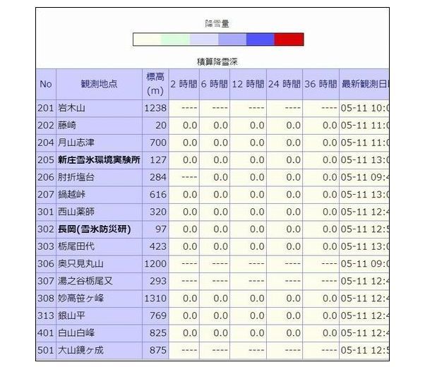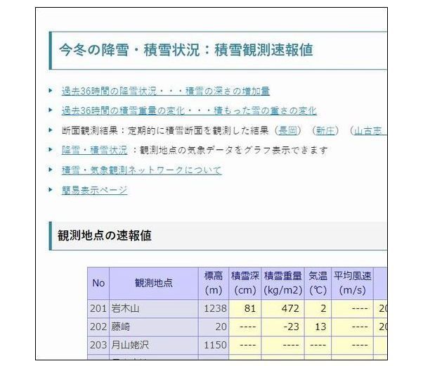 - 観測地点の積雪観測速報値