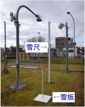 雪板:前日朝9時から当日朝9時までに板の上に積もった雪を人が測定します(日降雪深と新雪の平均密度)