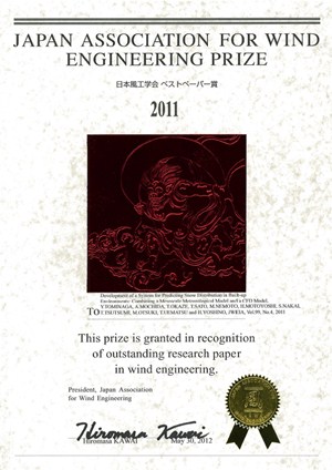 平成23年度「日本風工学会ベストペーパー賞」を受賞しました