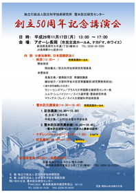 雪氷防災研究センター創立50周年記念講演会及び雪氷科学に関する国際ワークショップの開催