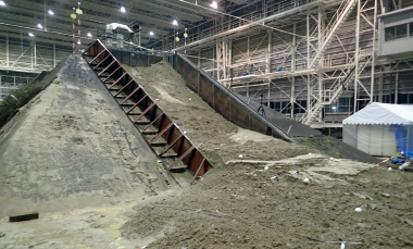 世界最大規模の大型降雨実験施設を利用して、豪雨によって発生する土砂崩れ・侵食などの土砂災害や、洪水災害等について実大規模の実験を中心に、基礎的・応用的研究を進めています。